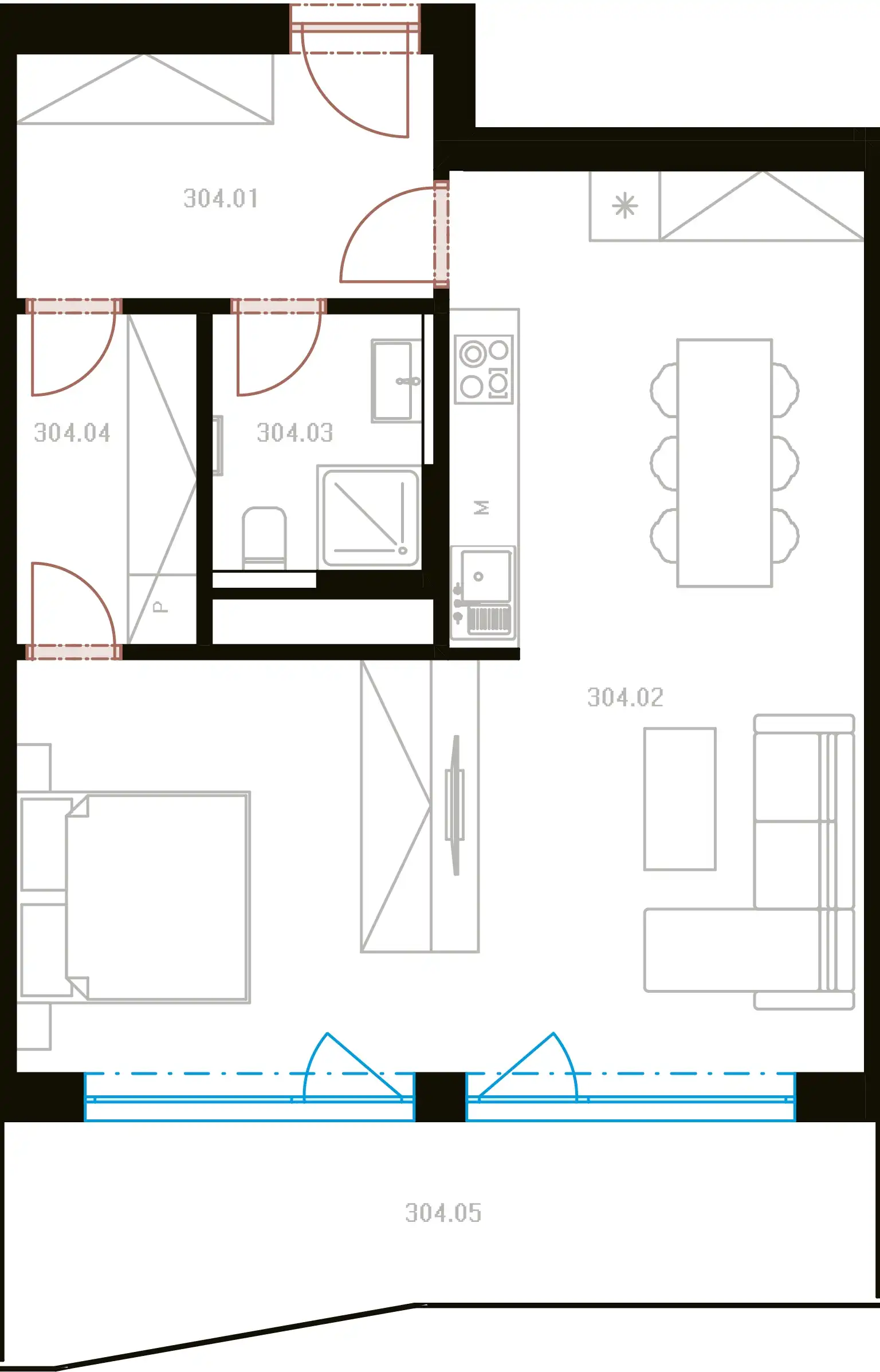 304.02 | Obývací pokoj + KK 40,39 m²